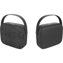 Fashionable & artistic design combines penetrating sound with an elegant, retro-design blended fabric; Bluetooth(R) Version 2.1; Bluetooth(R) range: 32.8ft; Hands-free calling & music streaming; Ultracompact size & convenient to carry; 3W x 1 output; 3.5mm aux input for non-Bluetooth(R)-enabled devices; Up to 3 hours of play time from built-in rechargeable battery; Includes USB charging cable & aux audio cable; Black;