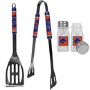 This stainless steel 2pc BBQ grill set is a tailgater's best friend. The colorful and large team graphics on each of the barbecue tools let's everyone know you are a fan! The set in includes a spatula and tongs with the Boise St. Broncos logo. The tool set comes with diner replica salt & pepper shakers that feature the team logo.