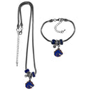 This must-have Boise St. Broncos look features the wildly popular euro bead style teamed with eye catching team charms. This set comes with a fashionable snake chain bracelet and 18 inch necklace both featuring a variety of team colored euro beads and rhinestone beads for classy look that outshines the average fan jewelry. This high quality set is great for game-day but a fan's going to want to show off this set everyday!Officially licensed College product Licensee: Siskiyou Buckle. Featuring the wildly popular euro beads on an 18 inch necklace and matching bracelet. High quality jewelry at a great price. On trend look paired with a sporty twist, featuring a fully cast metal team charm with enameled details. Boise St. Broncos ladies these necklace and bracelet sets are the perfect game-day outfit accessory