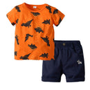 2 Pcs Boy Cotton Dinosaur Printed Short Sleeves Tops And Shorts