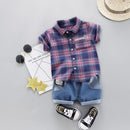 2 Pcs Boys Cotton Print Lapel Shirts And Denim Shorts Set