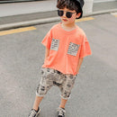 2 Pcs Boys Fashion Cartoon Person Print Tops And Shorts Set