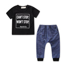 2 Pcs Boys Letter Print Tees And Casual Elastic Waist Pants