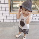 2 Pcs Boys Owl Print Vest And Plaid Print Shorts