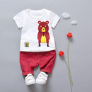 2 Pcs Casual Boys Cotton Cartoon Bear Print Tees And Matching Shorts Set