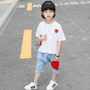 2 Pcs Youth Boys Love Heart Print Short Sleeves And Denim Shorts