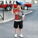 2 Pcs Youth Boys Patchwork Short Sleeves Tees And Shorts