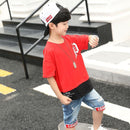 2 Pcs Youth Boys Patchwork Tees And Denim Shorts
