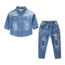 2 Pieces Set Boy Simple Style Pocket Design Denim Shirts And Jeans