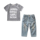 Boys 2 Pcs Cotton Letter Print T-shirts And Ripped Denim Jeans