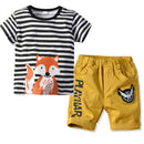 Boys 2 Pcs Set Cotton Fox Printed Tops And Shorts