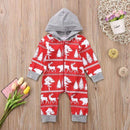 One Piece Baby Infant Toddler Cotton Christmas Print Hooded Jumpsuit