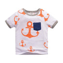 White Round Neck Blue Pocket Boat Anchor All Over Print Graphic Cotton Baby Girl Tops