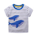 Boys Cartoon Shark Embroidered Round Collar Tee