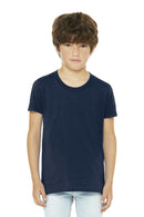 BELLA+CANVAS Youth Jersey Short Sleeve Tee . BC3001Y Retail fit Tear-away label Side seamed Solid Colors: 4.2-ounce, 100% Airlume combed and ring spun cotton, 32 singles Athletic Heather/Black Heather: 90/10 Airlume combed and ring spun cotton/poly Heather CVC Colors: 52/48 Airlume combed and ring spun cotton/poly
