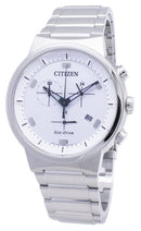 Stainless Steel Case Stainless Steel Bracelet Eco-Drive Movement Caliber: H500 Sapphire Crystal White Dial Analog Display Chronograph Function Date Display Pull/Push Crown Solid Case Back Deployment Clasp 100M Water Resistance Approximate Case Diameter: 41mm Approximate Case Thickness: 10.1mm