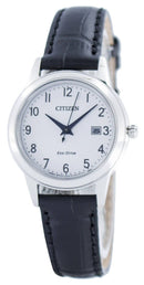 Stainless Steel Case Black Leather Strap Eco-Drive Movement Caliber: J710 Mineral Crystal White Dial Arabic Numeral Black Tone Hands And Markers Power Reserve Function Insufficient Charge Warning Overcharging Prevention Function Date Displays Solid Case Back Buckle Clasp 30M Water Resistance Approximate Case Diameter: 30mm Approximate Case Thickness: 8mm