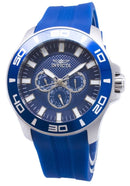 Stainless Steel Case Silicone Strap Quartz Movement Caliber: VH63 Flame Fusion Crystal Blue Dial Analog Display Chronograph Function Luminous Hands And Markers Day And Date Display Pull/Push Crown Solid Case Back Buckle Clasp 100M Water Resistance Approximate Case Diameter: 50mm Approximate Case Thickness: 18mm