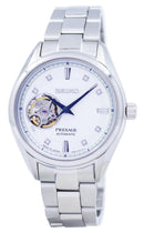 Made In Japan Stainless Steel Case Stainless Steel Bracelet Automatic Movement Caliber: 4R38 24 Jewels Sapphire Crystal Silver/White Dial Swarovski Diamond Accent Dial Markers Analog Display See Through Case Back Deployment Clasp 100M Water Resistance Approximate Case Diameter: 35MM Approximate Case Thickness: 11MM --- Authentic Watch --- 1-Year International Warranty --- Free Shipping