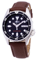 Stainless Steel Case Brown Leather Strap Automatic Movement Caliber: 7S26 Hardlex Crystal Black Dial Luminous Hands And Hour Markers Day And Date Window At The 3 O'clock Hour Uni-Directional Rotating Bezel Screw Down Crown Solid Case Back Buckle Clasp 200M Water Resistance Approximate Case Diameter: 37mm Approximate Case Thickness: 13mm