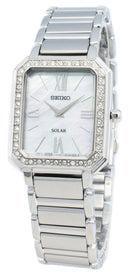 Stainless Steel Case Stainless Steel Bracelet Solar Movement Caliber: V115 Hardlex Crystal Mother Of Pearl Dial Analog Display Diamond Accents Accuracy: ±15 Seconds Per Month Overcharge Prevention Function Solid Case Back 3 Fold Clasp With Push Button Release 30M Water Resistance Approximate Case Diameter: 25mm Approximate Case Thickness: 6mm