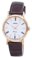 Gold Tone Stainless Steel Case Leather Strap Quartz Movement Caliber: 7N89 Sapphire Crystal White Dial Analog Display Date Display Buckle Clasp 30M Water Resistance Approximate Case Diameter: 30mm Approximate Case Thickness: 6mm
