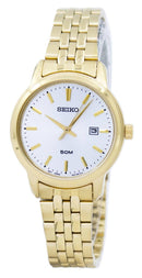 Gold Tone Stainless Steel Case Gold Tone Stainless Steel Bracelet Quartz Movement Caliber: 6N22 Hardlex Crystal Silver/White Dial Analog Display Date Display Deployment Clasp 50M Water Resistance Approximate Case Diameter: 30mm Approximate Case Thickness: 7mm