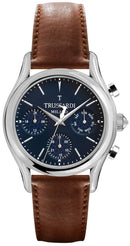 Stainless Steel Case Leather Strap Quartz Movement Caliber: VX9JE1 Mineral Crystal Blue Dial Analog Display Chronograph Function 12/24 Hours Format Day And Date Display Solid Case Back Buckle Clasp 100M Water Resistance Approximate Case Diameter: 32mm Approximate Case Thickness: 7.8mm
