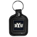 Our BYU Cougars black key fob with stitched detail and inlaid, metal team emblem with enameled color details. Officially licensed College product Licensee: Siskiyou Buckle. Genuine leather key chain. Standard split ring. Metal team emblem. Great way to show off your BYU Cougars pride