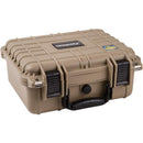 Ultradurable, fiberglass-infused polypropylene construction; Pluck foam; Weatherproof gasket; Pressure release valve; Overmolded handles; Meets TSA & airline safe requirements; Includes anticorrosion Zerust(R) tab; Interior dim: 14.75inchL x 10.25inchW x 6inchD; Desert Tan;