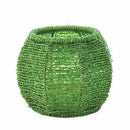Fun, easy style is yours with this cool candle holder. The wire frame is strung with hundreds of tiny emerald green beads that will sparkle and shine when you light the candle of your choice inside. Great indoors or on your patio table.