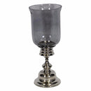 The right candle holder can turn the most simple candles into a work of art. decorate your home by adding an elegant metal/glass constructed candle holder. Its gray color glass and silver base will go beautifully with all colors of decor in your house. Dimensions: H 16.75 X 7 IN.