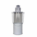 The lighthouse design of this lantern makes it distinctive from other lanterns. Its metal constructed body bears a white color. The lantern has a clear glass on the front. This white lantern features a handle, which makes it convenient to carry anywhere you please (Primary color: White). Dimensions: 8.9 X 7.1 X 21.1 IN.