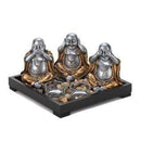 Invite peace and serenity into your home and remind everyone to speak no evil, hear no evil, and see no evil. The wooden frame of this serenity garden is filled with polished stones, two clear glass candle cups, and three charming Buddha statues.