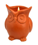This 9-oz. rustic ceramic woodland owl candle features a yummy pumpkin soufflŽ scent and hand-poured soy blend wax. It is an adorable addition to your fall candle collection. The pumpkin soufflŽ scent features notes of pumpkin puree and cashew cream, accented with maple sugar and white vanilla frosting with undertones of cinnamon and clove. This cute winter white candle is a real hoot, and it offers a taste of autumn, without any calories! Lead and tin free cotton wick. Burn time: up to 45 hours. Weight 1 pound. 4" x 4" x 4.25". Ceramic, Soy Blended Wax. UPC Number: 843730081280.