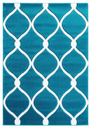 With a contemporary and modern design, this effortlessly stunning rug will liven up your room decor. Simple and chic, this pure white trellis design is accented by a bright turquoise blue backdrop that will add a regal touch to your room decor. This machine-made rug has a hand carved design and is stain and fade resistant for your lifestyle needs.