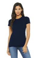 BELLA+CANVAS Womens The Favorite Tee . BC6004 Slim fit Tear-away label Longer body length Side seamed Shoulder taping Solid Colors: 4.2-ounce, 100% Airlume combed and ring spun cotton, 32 singles Athletic Heather/Black Heather: 90/10 Airlume combed and ring spun cotton/poly Heather CVC Colors: 52/48 Airlume combed and ring spun cotton/poly