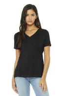 BELLA+CANVAS Womens Relaxed Jersey Short Sleeve V-Neck Tee. BC6405 Relaxed fit Tear-away label Side seamed Solid Colors: 4.2-ounce, 100% Airlume combed and ring spun cotton, 32 singles Dark Grey Heather: 52/48 Airlume combed and ring spun cotton/poly TriColors: 3.8-ounce, 50/25/25 poly/Airlume combed and ring spun cotton/rayon, 40 singles