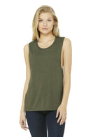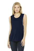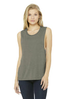 BELLA+CANVAS Womens Flowy Scoop Muscle Tank . BC8803 Relaxed, drapey fit Tear-away label Side seamed Low-cut armholes Curved bottom hem Solid Colors: 3.7-ounce, 65/35 poly/viscose, 32 singles Athletic Heather: 52/48 poly/viscose Black Heather: 80/20 rayon/poly Heather Navy: 70/30 rayon/poly Marble Colors: 3.5-ounce, 91/9 poly/Airlume combed and ring spun cotton, 32 singles Vintage Slub Colors: 4-ounce, 50/37.5/12.5 poly/Airlume combed and ring spun cotton/rayon, 32 singles Solid Black Slub: 4-ounce, 40/30/30 poly/Airlume combed and ring spun cotton/rayon, 32 singles