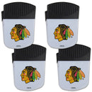 Use this attractive clip magnet to hold memos, photos or appointment cards on the fridge or take it down keep use it to clip bags shut. The magnet features a printed Chicago Blackhawks logo.Officially licensed NHL product Licensee: Siskiyou Buckle. Pack of 4, 2 inch wide clip magnet, with bottle opener on the back. Strong magnet to hold memos or notes. Use a clip to keep chips or other bag items fresh. The Chicago Blackhawks logo is printed on the front of the magnet
