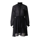 Fashion Ruffled Lace-up Long-sleeve Layered Chiffon Dress