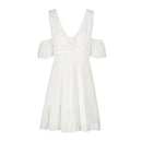Fashion Women Sweet Cool Shoulder White Color Chiffon Dress