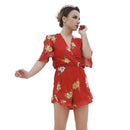 Sexy V Neck Printed Chiffon Short Sleeved Conjoined Shorts