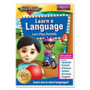 Learn a Language is Let's Play Outside (DVD) Discover a new language or practice vocabulary in your child's first language. Choose from Spanish, French, Mandarin Chinese, Italian, German, and English is all six languages on one DVD! In this exciting adventure, kids learn simple words and phrases for playful outside activities and objects. They learn about nature and common animals. Action verbs include walking, running, hide and seek, and more. Kids explore different foods at a picnic and learn words for outdoor play. Introduces gender and more. Colorful animation, real images, and adorable characters create an engaging experience that's clear and easy to follow. From the main menu, select audio and subtitles in any of the six languages. They're easy to mix and match. You can even turn off subtitles. Approx. 35 minutes per language. Ages 2 is6.