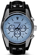 Stainless Steel Case Black Genuine Leather Strap Quartz Movement Mineral Crystal Blue Dial Chronograph Three Sub Dials Tachymeter Date Display Buckle Strap 100M Water Resistant Approximate Case Diameter: 45MM Approximate Case Thickness: 12MM --- Authentic Watch --- 1-Year International Warranty --- Free Shipping