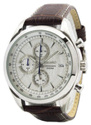 Stainless Steel Case Brown Leather Strap Quartz Movement Caliber: 8T67 Hardlex Crystal White Dial Batons Dial Markers Luminous Hands And Markers Chronograph Function Tachymeter Scale Date Display Solid Case Back Buckle Clasp 100M Water Resistance Approximate Case Diameter: 45MM Approximate Case Thickness: 12.5MM --- Authentic Watch --- 1-Year International Warranty --- Free Shipping