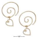12 Karat Gold Filled Spiral Ear Threader Wire Hoop With Heart Earrings
