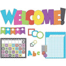 Decorating your classroom is a snap with our Chevron classroom set. The set includes, 30 accents,30 pennant accents, a 41 piece bulletin board, 2 charts each 17" x 22" , 4" letters (208 pcs), a set of calendar days (36 pcs), 36 mini accents, and 378 mini stickers.
