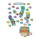 Treasure chest, 20in. x 14.25in. 4 divers, largest approx. 9.75in. x 23.25in. 31 sea animal accents. "Dive Into Learning!" header. Jeweled fish blank header. Resource guide