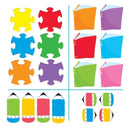 These bright and convenient pencil, puzzle piece, and book accents will help you promote reading, writing, and literacy! Label containers, lockers and centers, accent displays, decorate walls and posters, showcase student work, inspire creative writing, and reward accomplishments. Endless possibilities! Precut and ready to use. Durable and reusable. 20 different designs; 180 pieces total. Sizes range from 3" to 6" tall.